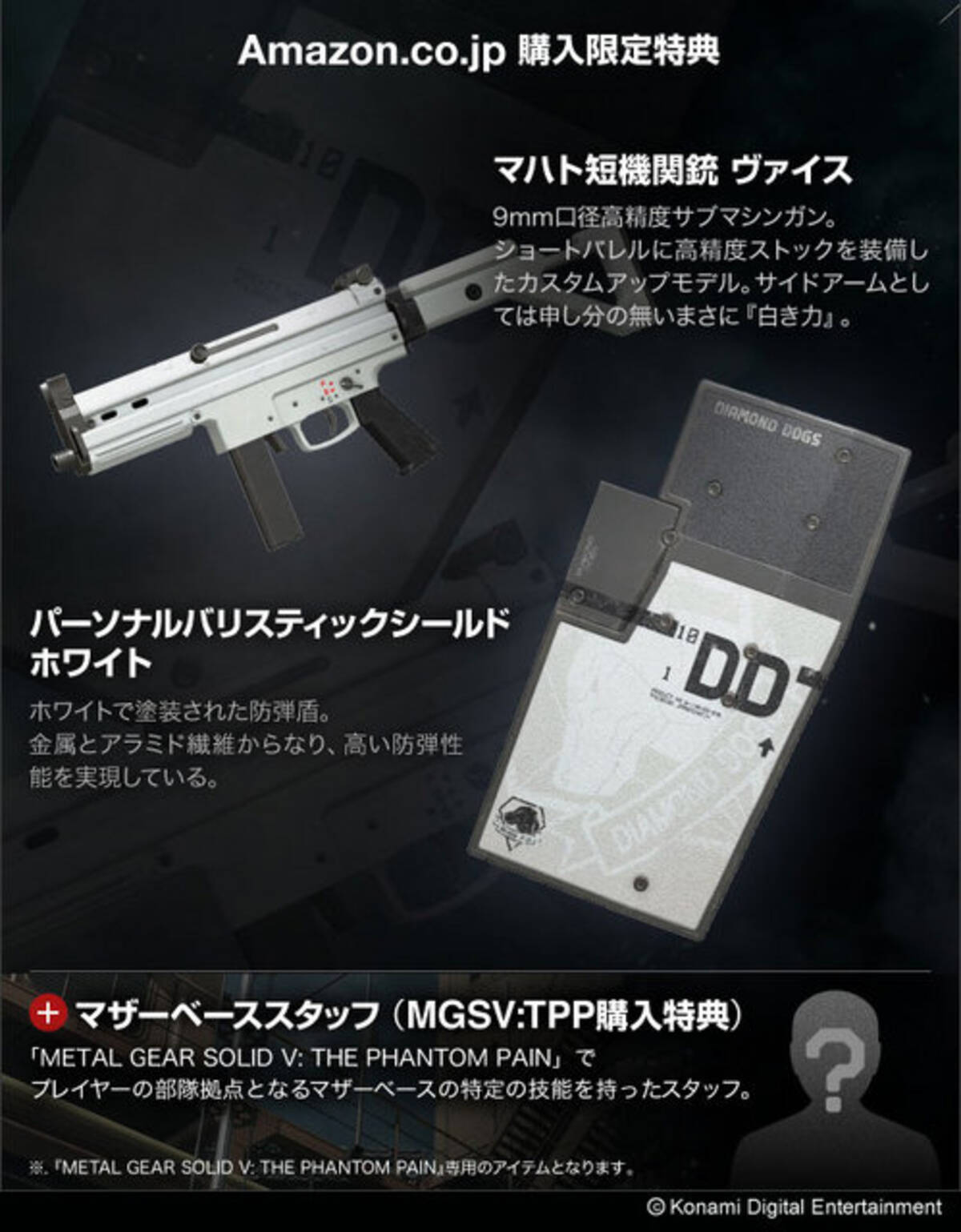 Mgsv Tpp 店舗別特典が公開 サブマシンガンやお馴染み ダンボール箱 も 15年3月5日 エキサイトニュース